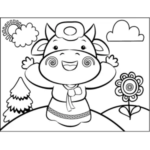 Cow in a Dress Printable Coloring Page, free to download and print. Learn about farm creatures with this printable animal coloring page of a blushing cow in a dress.