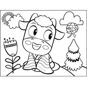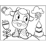 Cow in a Robe Printable Coloring Page, free to download and print. The cow in this printable animal coloring page wears a flowing robes and smiles at a drifting flower.