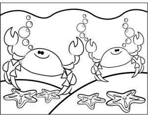 Cute Crabs Printable Coloring Page, free to download and print. Two crabs happily dance and click their claws under the sea in this printable coloring page.