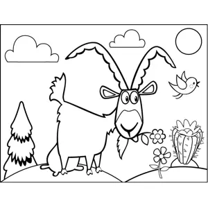 Goat Eating Flowers Printable Coloring Page, free to download and print. The cute goat in this printable animal coloring page is happily chewing on a number of flowers.