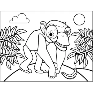 Grinning Monkey with Banana Printable Coloring Page, free to download and print. A banana sits at the feet of a grinning monkey in this printable animal coloring page.