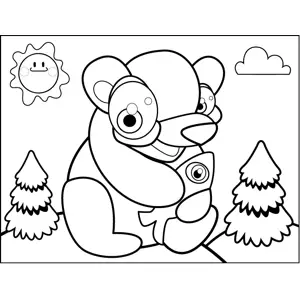 Happy Bear with Fish Printable Coloring Page, free to download and print. A happy bear holds its fish dinner in its front paws in this printable animal coloring page for kids.