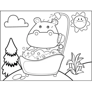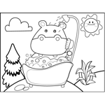 Hippo Taking a Bath Printable Coloring Page, free to download and print. Color in this printable animal coloring page of a hippo scrubbing itself clean in the shower.