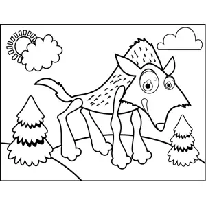 Hungry Wolf Printable Coloring Page, free to download and print. A hungry, hair wolf prowls through the trees in this printable animal coloring page for kids.