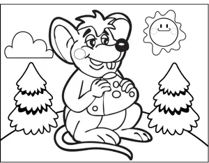 Mouse Eating Cheese Printable Coloring Page, free to download and print. This printable animal coloring page features a mouse eating cheese with a full stomach.