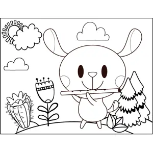 Mouse Playing Flute Printable Coloring Page, free to download and print. Musicians and pet-lovers will enjoy this printable animal coloring page of a cute mouse playing the flute in a field.
