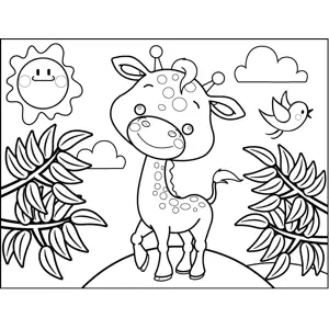 Prancing Giraffe Printable Coloring Page, free to download and print. Color in the spots on the prancing giraffe in this printable animal coloring page for children.