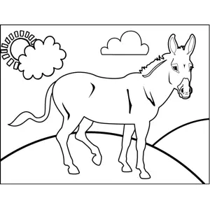 Proud Donkey Printable Coloring Page, free to download and print. A proud donkey stands on a hill in this printable animal coloring page for young artists.