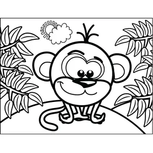 Shy Monkey Printable Coloring Page, free to download and print. This printable animal coloring page features a shy, round monkey smiling at the ground.