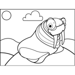 Sitting Walrus Printable Coloring Page, free to download and print. Great for marine art projects, this printable animal coloring page features a cute walrus with long tusks.
