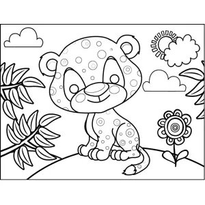 Spotted Leopard Printable Coloring Page, free to download and print. Choose a lot of fun colors to fill in all the spots on the spotted leopard in this printable animal coloring page.