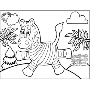 Startled Zebra Printable Coloring Page, free to download and print. The zebra in this printable animal coloring page has been startled and is running away in alarm.