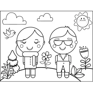 Elegant Couple Printable Coloring Page, free to download and print. Great for the fashionable and well-dressed, this printable people coloring page shows a couple dressed in stylish clothing.