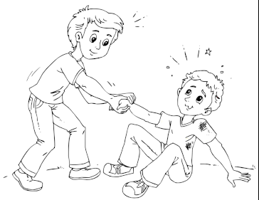 Giving A Helping Hand Printable Coloring Page, free to download and print. Kids can reflect on practicing empathy and helping others as they coloring this image of a child helping up a child who has fallen.