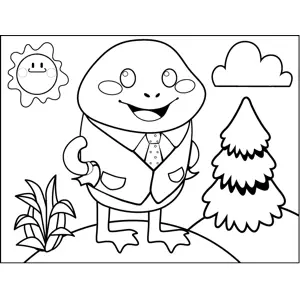 Frog in Suit Printable Coloring Page, free to download and print. There's a happy, smiling frog dressed in a snappy suit in this printable amphibian coloring page for young artists and pet owners.