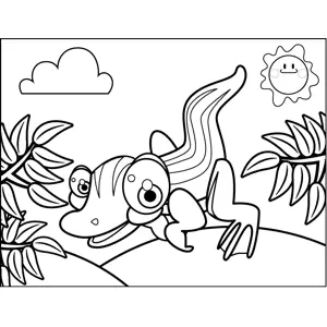Leaping Lizard Printable Coloring Page, free to download and print. Complete with webbed feet and a striped tail, the little lizard in this printable reptile coloring page is running through leafy branches.