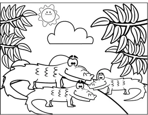 Three Crocodiles Printable Coloring Page, free to download and print. Great for quiet activities, teachers will enjoy giving young students this printable animal coloring page of three crocodiles.