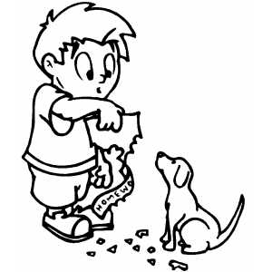 Disappointed Boy With Eaten Homework coloring page