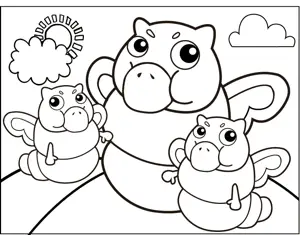 Angry Monsters Printable Coloring Page, free to download and print. An angry monster and its two children stand on a sunny hill in this printable coloring page.