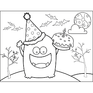 Party Monster with Cake coloring page