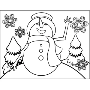 Happy Snowman Printable Coloring Page, free to download and print. Celebrate the winter holidays with this printable coloring page of a happy snowman waving at the falling snowflakes.