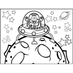 Alien Landing on Asteroid Printable Coloring Page, free to download and print. Happy and curling its tentacles, the alien in this printable outer space coloring page has landed its UFO on a meteoroid.