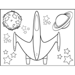 Floating Spaceship Printable Coloring Page, free to download and print. Great for sci-fi art activities, this printable space coloring page features a rocketship hovering amongst the stars.