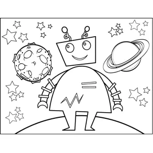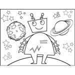Happy Robot Printable Coloring Page, free to download and print. A happy robot with antennae gazes fondly into deep spaces in this printable universe coloring page.