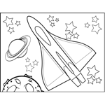 Planets and Rocketship Printable Coloring Page, free to download and print. Young students and aspiring astronauts will enjoy this printable outer space coloring page of a rocketship flying past the planets.