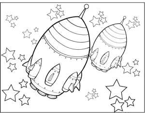 Rocketships with Space Pods Printable Coloring Page, free to download and print. Ready to launch space pods, the two rocketships in this printable outer space coloring page are great for art activities.
