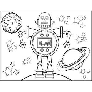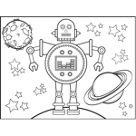 Space_Travel Droid Printable Coloring Page, free to download and print. The space droid in this printable sci-fi coloring page has lots of buttons, switches and metal joints.