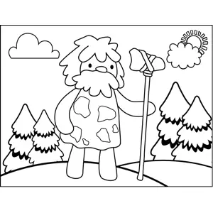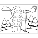 Bearded Caveman Printable Coloring Page, free to download and print. The bearded caveman in this printable Stone Age coloring page wears animal skins and carries a crude spear through the forest.