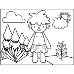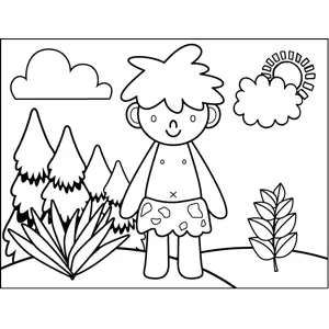 Happy Caveman Printable Coloring Page, free to download and print. Great for early history lessons, this printable coloring page shows a cute little boy in a loincloth standing in a field.