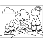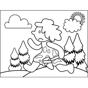 Sad Running Caveman Printable Coloring Page, free to download and print. A sad, possibly frightened caveman runs quickly away from an unknown danger that pursues him through the trees in this printable Stone Age coloring page.