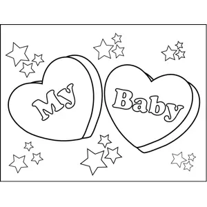 My Baby Candy Hearts Printable Coloring Page, free to download and print. Celebrate Valentine's day with this printable holiday coloring page of stars and two candy hearts with the words "My Baby."