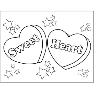 Sweet Heart Candy Hearts Printable Coloring Page, free to download and print. Two candy hearts say "Sweet" and "Heart" in this printable Valentine coloring page.