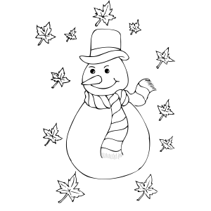 Snowman and Leaves coloring page